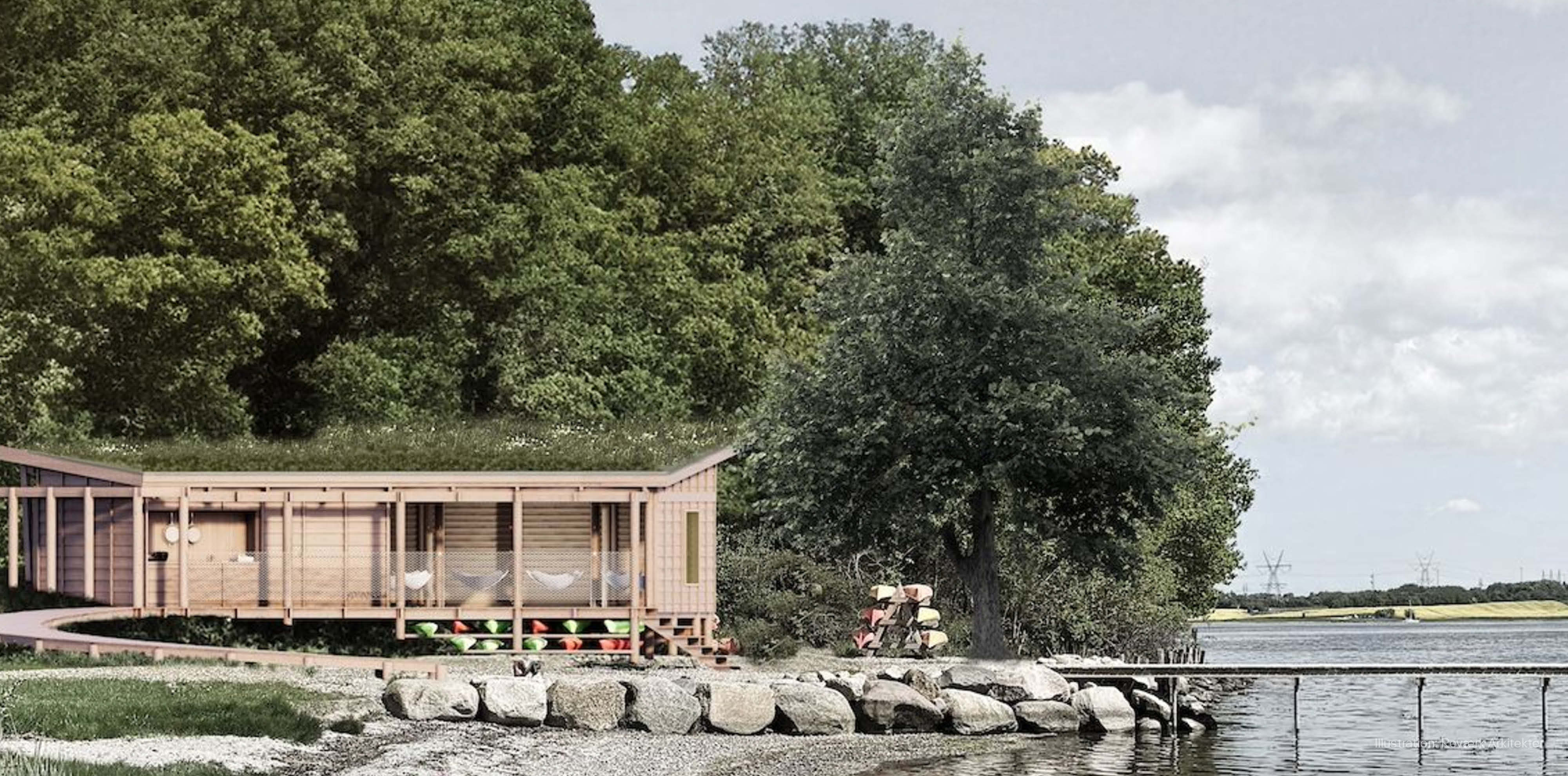 KFUM-spejdernes nye spejdercenter ved Houens Odde består af tre bygninger, som er i naturlig forlængelse af skovens rum i naturens egne materialer. Et spejdercenter, hvor grænsen mellem ude og inde udviskes i det varierede landskab ved Kolding Fjord. Projektets vision er at bygge cirkulært med synlige konstruktioner af rundtømmer, som fremhæver spejdernes identitet. Projektet er tegnet af Reværk Arkitektur, og støttet af A.P. Møller Fonden, med det formål at gøre spejderlivet attraktivt for flere børn og unge.