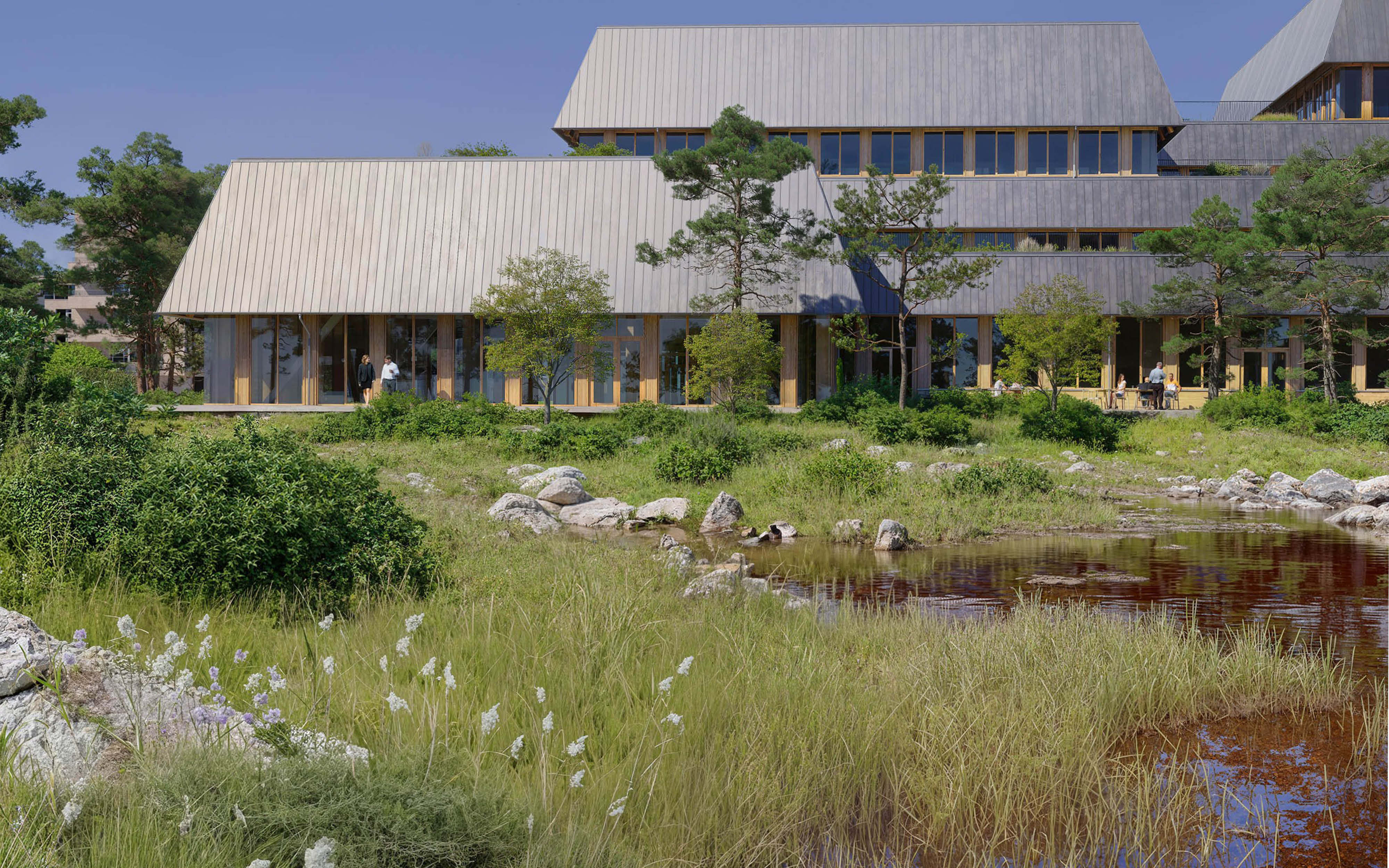 Naturens elementer; vand, sol- og himmellys ses og mærkes i bygningens design. Oppe på etagerne etableres store taghaver, så medarbejdere og besøgende kommer til at få en arbejdsdag, hvor oplevelsen af naturen er til stede hele tiden.
